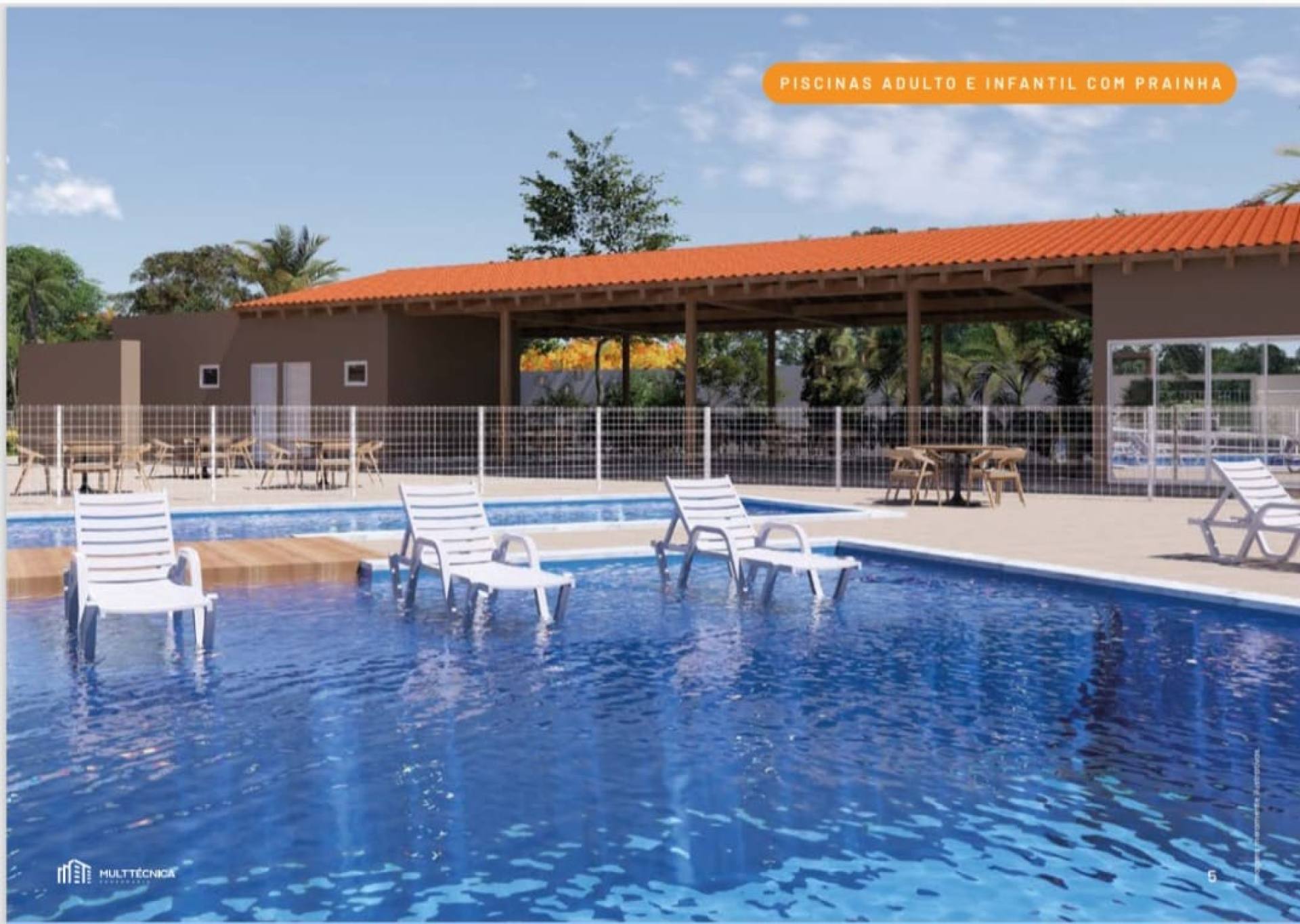 Piscinas adulto e infantil com prainha